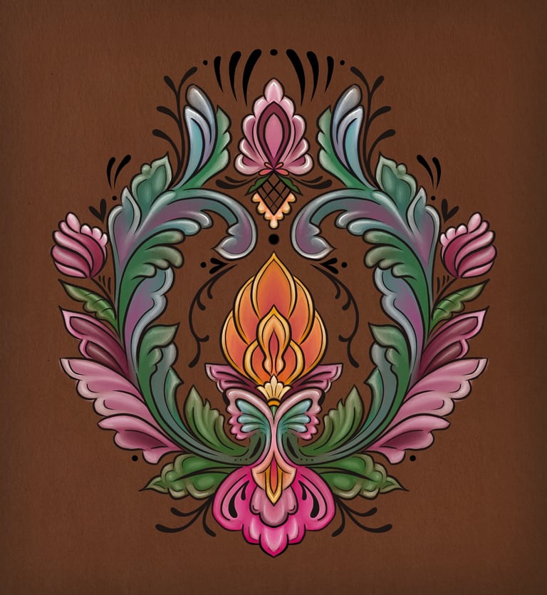 I’d like to share an invitation and intention for the upcoming year. I’d like to do more color floral work and adornment for all bodies. This is the floral work I have burned into my memories from my upbringing. It gives me comfort to make work that reminds me of the better parts of home. This is my little version of it. A mix of tradition with new ideas. I want to share this Rosemaling with everyone. All skin tones, genders, and shapes are welcome in my chair. This is my offering and desire for a beautiful new year. May there be peace between us all.